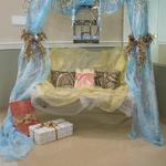 The ceremonial swing was used as a gift area for this wedding. Draped in fabric, this area became a beautiful and functional display. Embellished pillows, card cage and prewrapped color coordinated gifts were added to create this unique presentation. ~